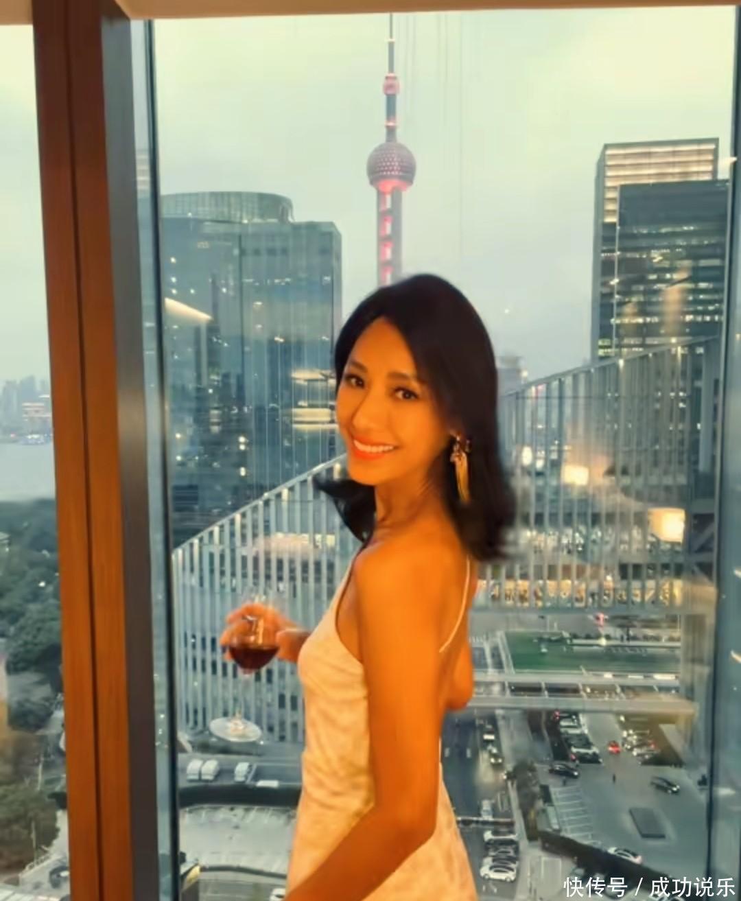 48 岁的蒋怡站在上海酒店的落地窗前,手里晃着红酒杯,白色高开叉礼服把身材衬得那叫一个绝。窗外东方明珠亮堂堂的,屋里老公正忙着给她拍照,这画面哪像结婚十三年的老夫老妻?分明热恋期都没这么腻歪。