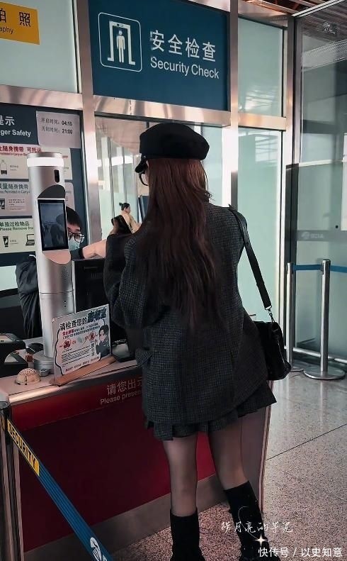 远远望去,她身姿修长挺拔,肩颈线条柔韧流畅,即便只是随意伫立于机场大厅一角,也如一幅静默却吸睛的油画,引得路人频频驻足回望。