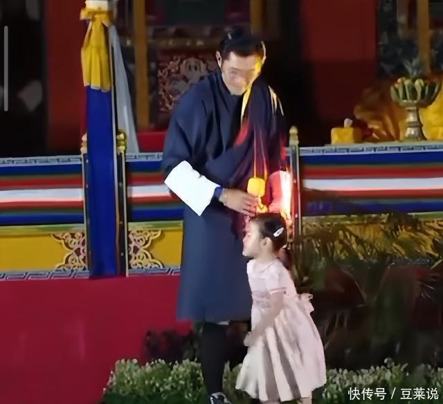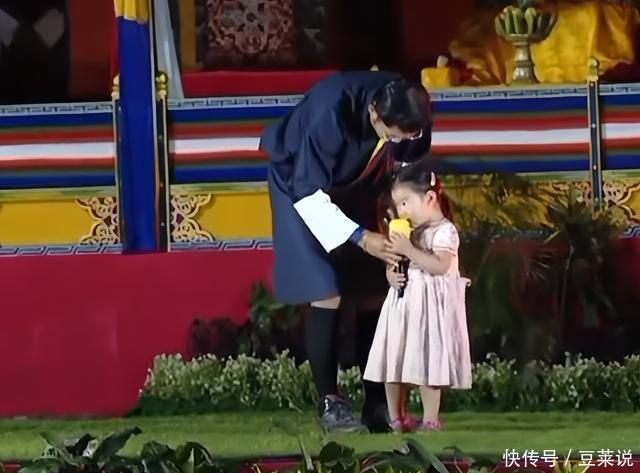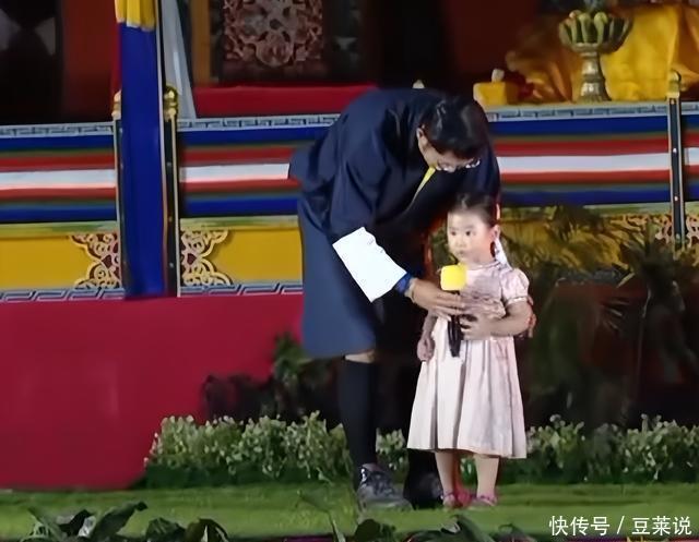 台下都是辛苦劳作的工人们,休息时间,吉格梅国王就像个普通老爹一样,小女儿索南公主现在能开口说话了,于是他拿着话筒,递给了小女儿,想让她表演表演秀一把,给大家打个招呼。