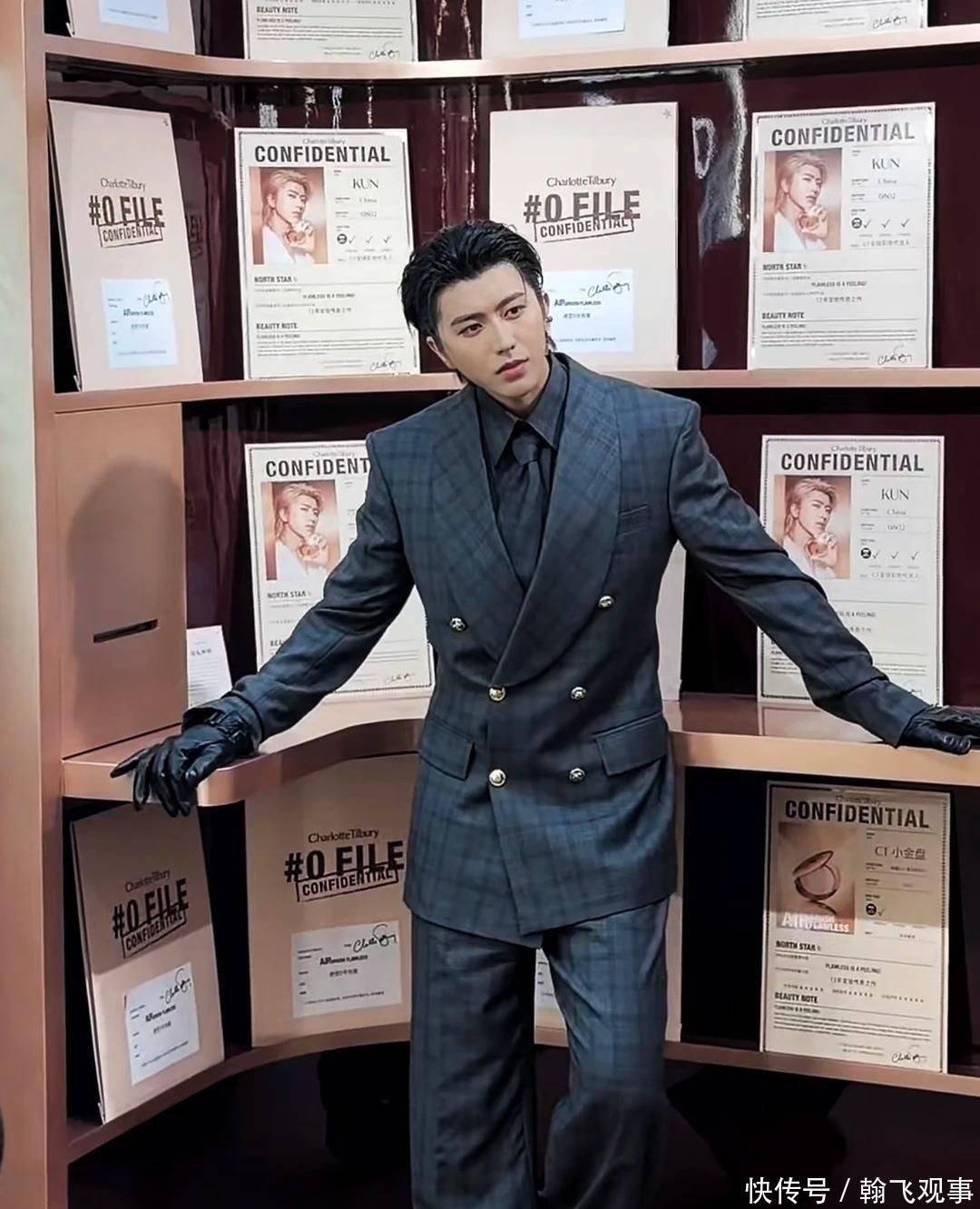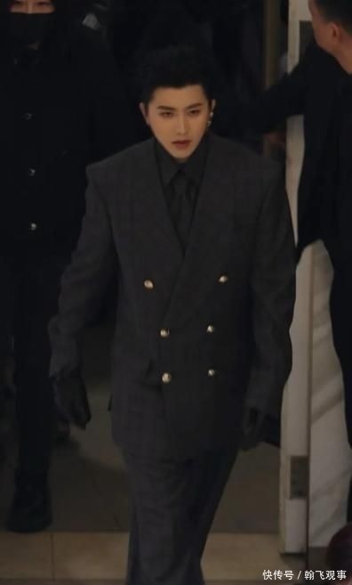 4. 不过在我眼中,这套造型并未完全契合他的气质。格纹元素在视觉上略显膨胀,使身形显得不够挺拔;而紧贴头皮的背头虽强调干练,却削弱了他原本清秀的轮廓,反倒透出几分刻意营造的油滑感。