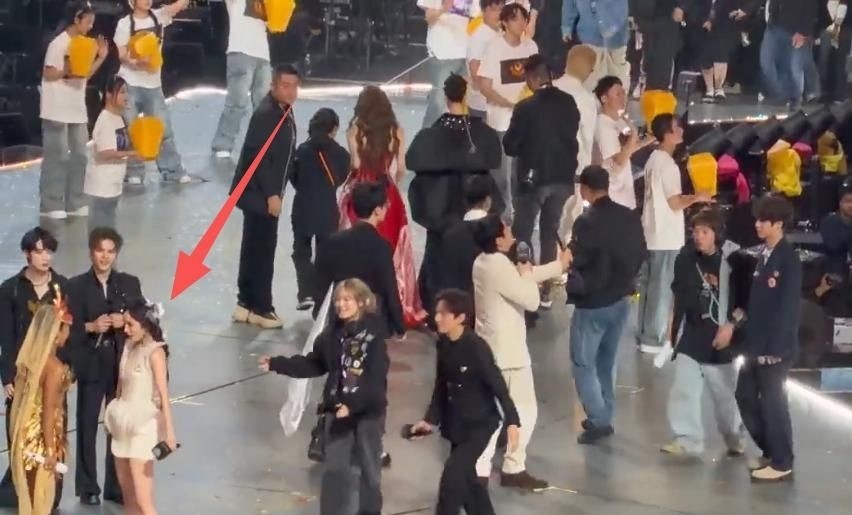 41. 她先是热情拥抱欧阳娜娜,随后在台上跳跃欢呼,活力四射。