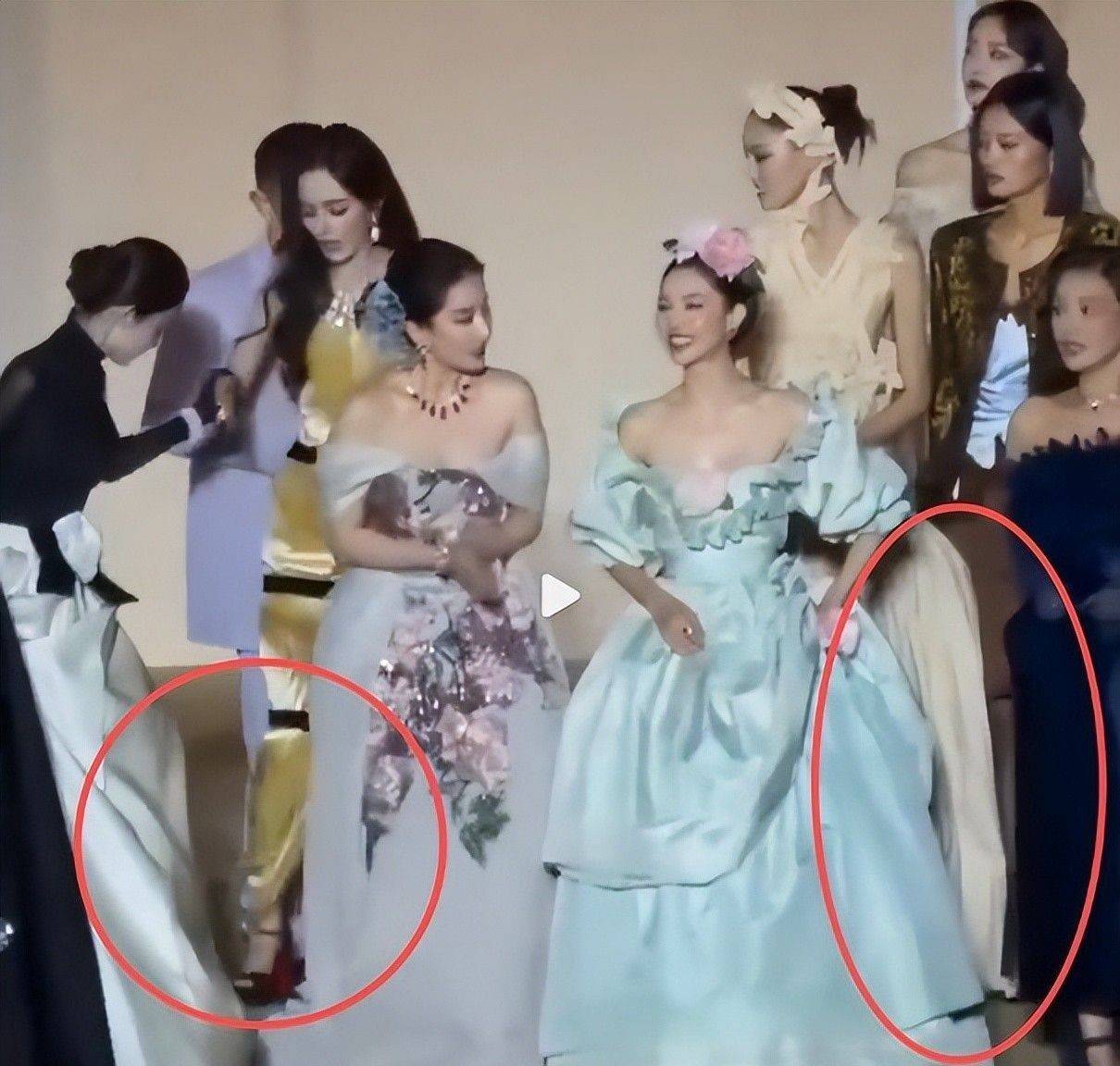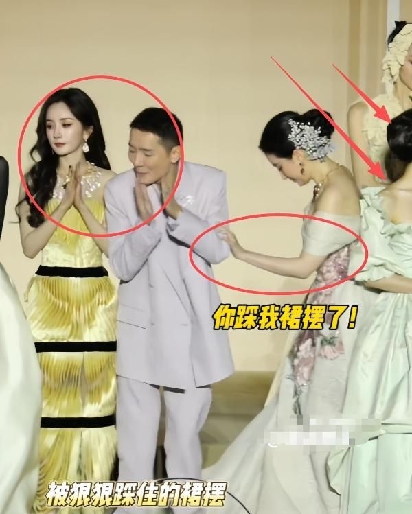 9. 更令人意外的是,因人群挤压,活动总裁不慎踩到了刘亦菲拖地的裙摆。